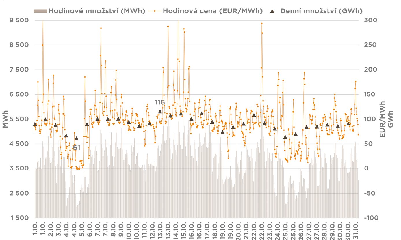 Společnost OTE provozuje několik trhů umožňujících obchodovat jak s elektřinou, tak i s plynem. Na celkovém nárůstu zobchodovaného množství s elektřinou se jednotlivé trhy podílely v prvních deseti měsících roku 2025 následovně. Na denním trhu (DT), kde se obchodují dodávky na den dopředu, se zobchodovalo 26 146,7 GWh (82,5 %). Na vnitrodenním kontinuálním trhu (VDT), kde mohou účastníci trhu obchodovat nepřetržitě v průběhu celého dne, se zobchodovalo 4 904,4 GWh (15,4 %). A na vnitrodenních aukcích (IDA) se zobchodovalo 660,5 GWh (2,1 %). Průměrná cena, za kterou se obchodovalo, dosáhla v období leden–říjen 2025 hodnoty 94,77 EUR/MWh na denním trhu s elektřinou, na VDT je vážený průměr cen 95,78 EUR/MWh a na IDA 95,34 EUR/MWh, což představuje nárůst cen o cca 10 %.
