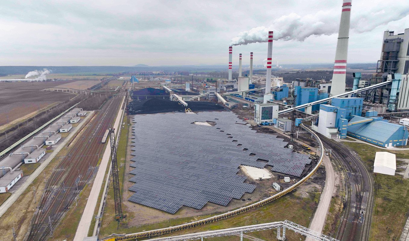 Fotovoltaická elektrárna v lokalitě Mělník je umístěna na bývalé skládce uhlí