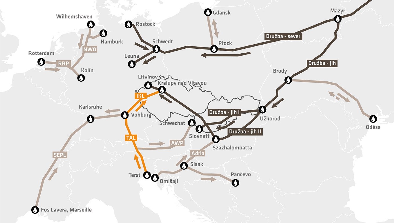 Silněji Evropu zasáhlo přerušení dodávek ropovodem Družba přes Ukrajinu, ke kterému došlo 27. ledna. Maďarsko a Slovensko, které díky výjimce smí kupovat ruskou ropu do konce října 2027, se tak ocitly v nesnázích. Společnosti Slovnaft a MOL, jež v těchto zemích provozují rafinerie, dokonce v únoru musely využít ropu ze státních hmotných rezerv. Zástupci maďarské a slovenské vlády zároveň oslovili Chorvatsko ohledně možnosti využít k tranzitu ruské komodity ropovod Adria (viz Obrázek č. 1). Dostalo se jim však nesmlouvavé odpovědi: pomůžeme, ale ne s ropou z Ruska. Česká republika mezitím nabídla Slovensku možnost dodávek reverzním tokem ropovodu Družba, i když technická omezení zatím umožňují jen menší objemy.